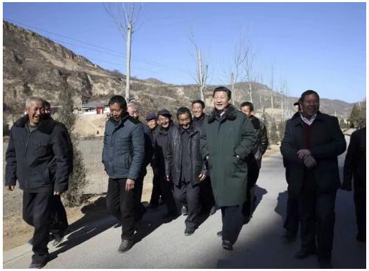 2015年2月13日至16日,习近平在延安市延川县文安驿镇梁家河村调研时同村民边走边聊。
