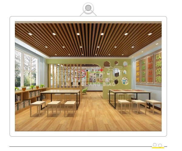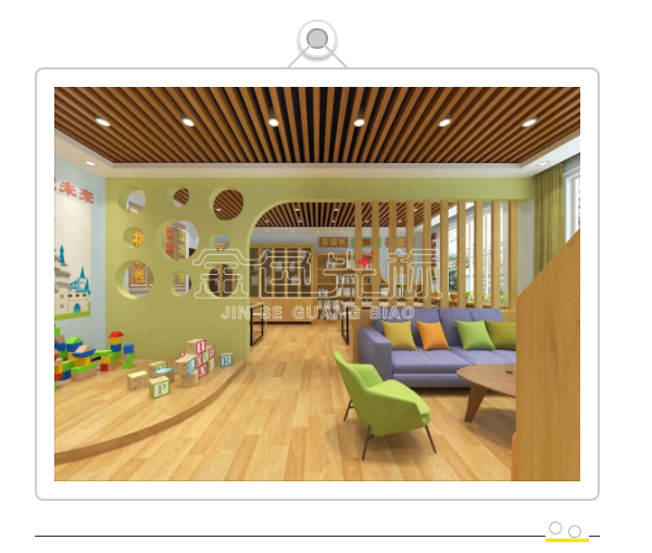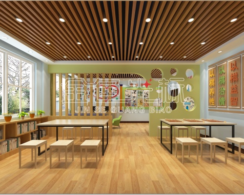 室内环境建设主要以草绿色、淡棕色为主色调,基调鲜艳夺目;融入独特造型设计及常规寄语、学生风采,使学生能够更好的融入儿童之家。