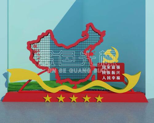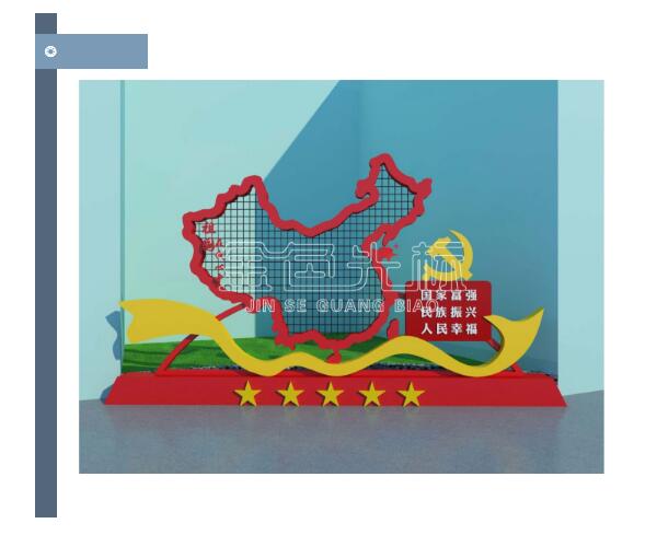 均是设计了一个红色底座,如同展示台一般;党建文化以地图的图案造型设计,较符合祖国在我心中的主题,再融合基本理论知识展板。