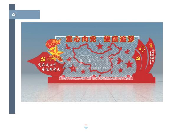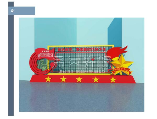 少先队文化使用一些标志性图案为造型装点,简单的框架结构加上主题标语,明了表达出文化的中心思想。
