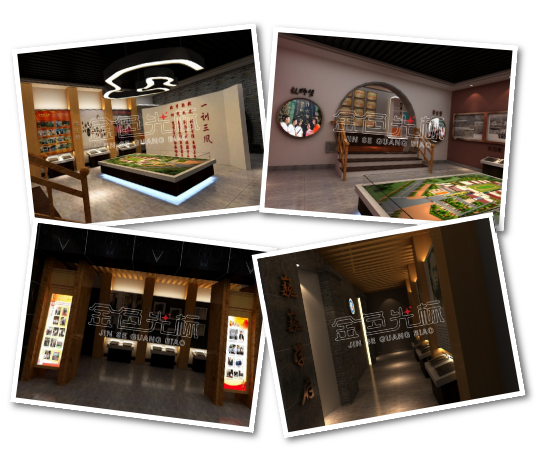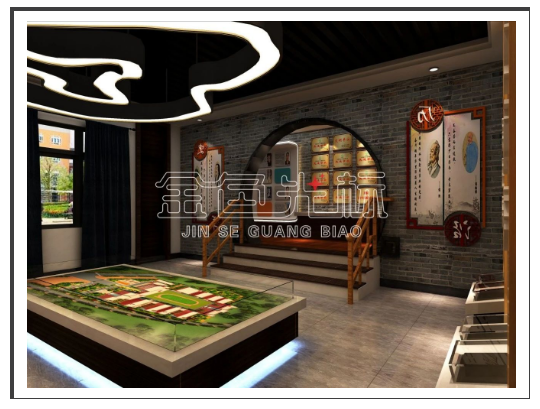以黑色、白色、灰色等比较暗色系的色调来装点,突出历史的厚重感。加以一些传统文化元素,造型等;融入校园各方面文化,丰富校史馆内部框架。