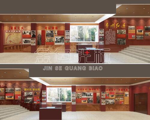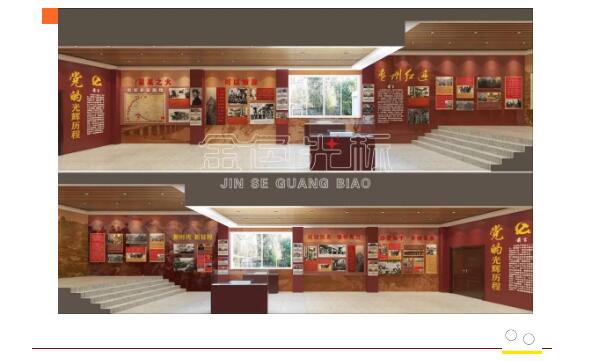鲜明主题,统一选取同类型代表性事迹。采用油画布进行张贴布局,突出版块进行展示,同时采购一些历史代表性的物品物质,用展柜依次展示。
